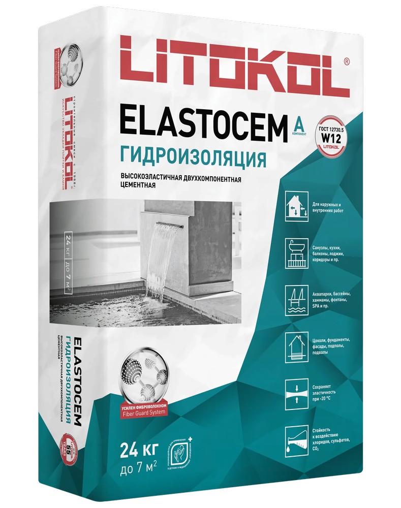 —Эластичная гидроизоляция ELASTOCEM A+B, компонент A - гидроизоляция (мешок 24 кг)