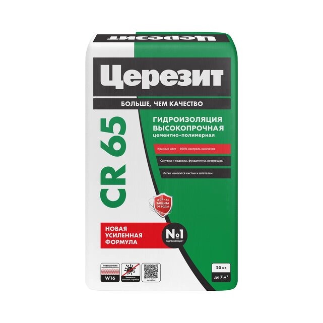 —Цементная гидроизоляционная масса Ceresit CR 65 WATERPROOF, 20 кг