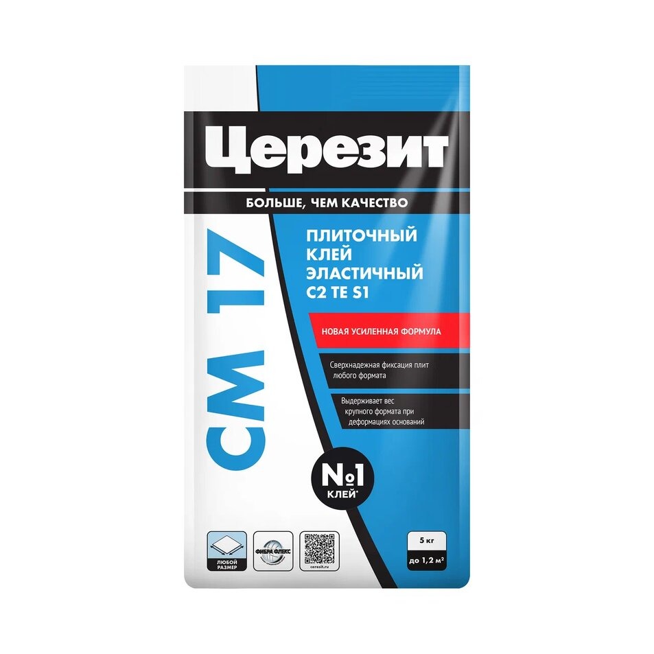 —Клей для плитки Ceresit CM17 Белый эластичный, крупноразмерные плиты, свыше 1000*1000 мм, 5 кг