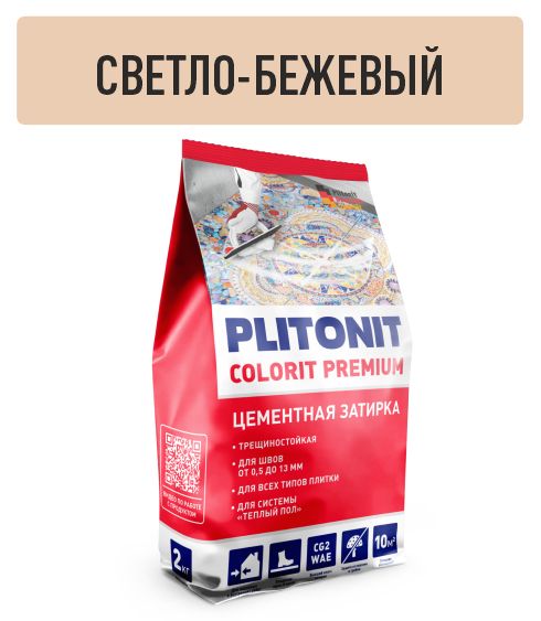 Затирка для швов PLITONIT Colorit Premium биоцидная светло-бежевая 0.5-13 мм фольгиров пакет 2 кг