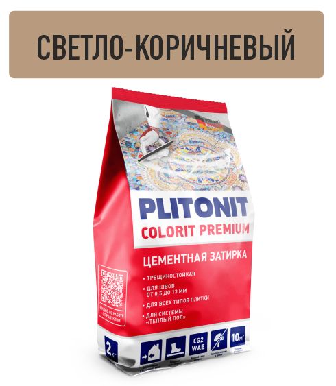 —Затирка для швов PLITONIT Colorit Premium биоцидная светло-коричневая 0.5-13 мм фольгиров пакет 2 кг