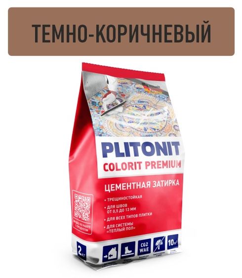—Затирка для швов PLITONIT Colorit Premium биоцидная темно-коричневая 0.5-13 мм фольгиров пакет 2 кг