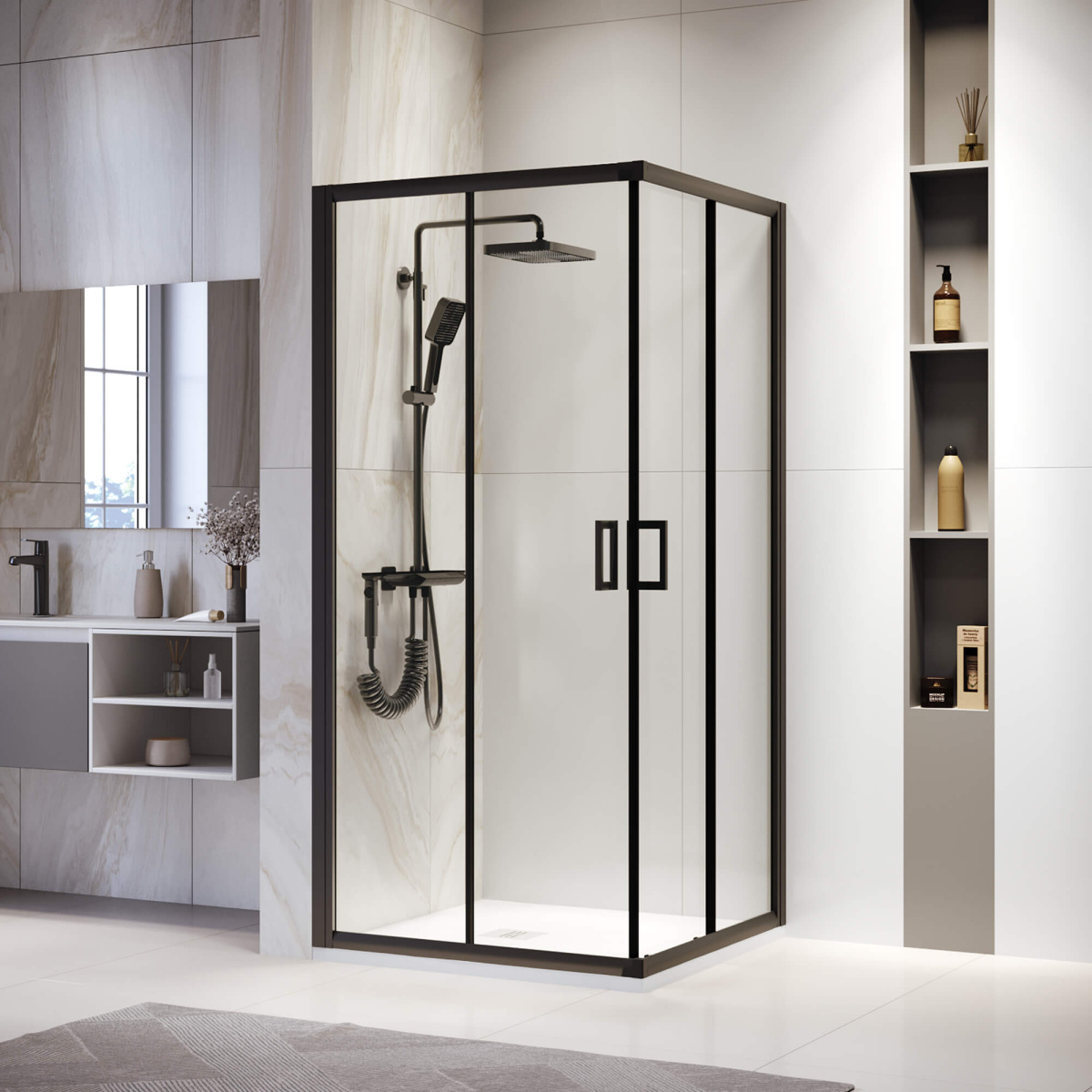 —PA-39B 900х900х1950 профиль:Черный стекло:Прозрачное 03083999-14