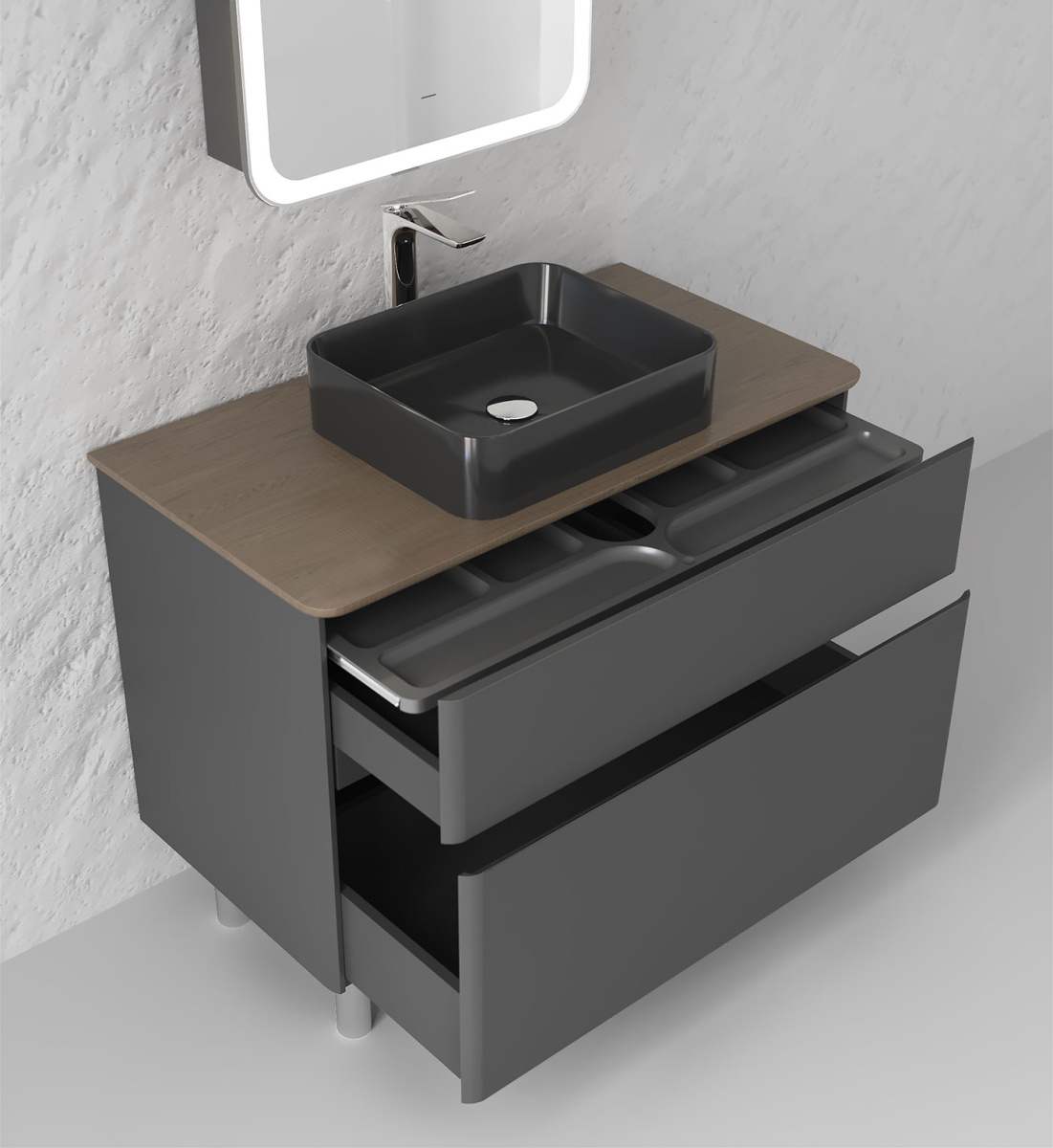 Тумба Morelle 100 подвесная антрацит/трюфель Mrl.01.100/P/A-T/RL