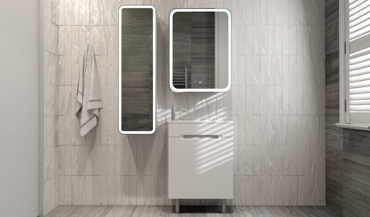 —Зеркало-шкаф Bosko 50, с подсветкой и часами, подвесное, белое Bos.03.50/W