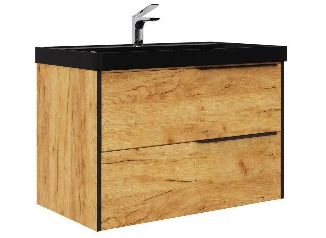 —Тумба Fostero 80 подвесная, цвет: Дуб Крафт золотой, с раковиной Астория 80 черн. Fst.07.80/P/DZ/RB