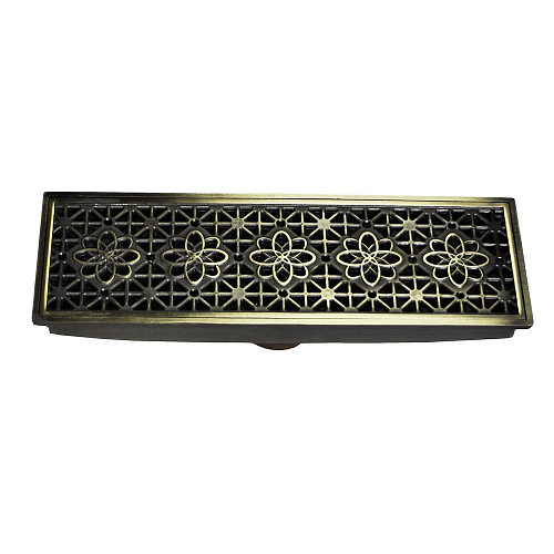 Трап 300х100 под старую бронзу с декором вертикальный с сухим затвором воды 00034